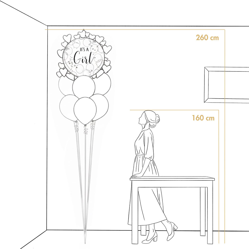 The arrival of a little girl brings light, warmth and endless happiness to the home. Every moment becomes special and full of tenderness, which is why this balloon bouquet is the perfect choice for celebrating a new life. In the center of the bouquet, a large round balloon “It’s a Girl” flaunts, which with its gentle appearance announces the good news. Six smaller balloons in pink and gold shades gently float around it, which together create a feeling of softness, playfulness and festive charm. Balloons filled with helium, with their lightness, enliven any space and bring a smile and a touch of fairyland. A balloon bouquet is a wonderful gift for the birth of a girl, expressing joy, pride and love at the arrival of a new family member.