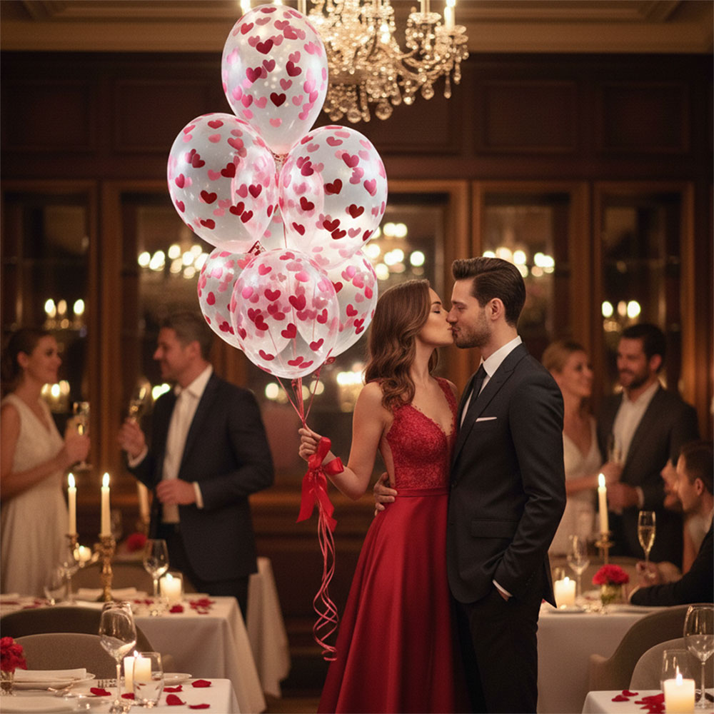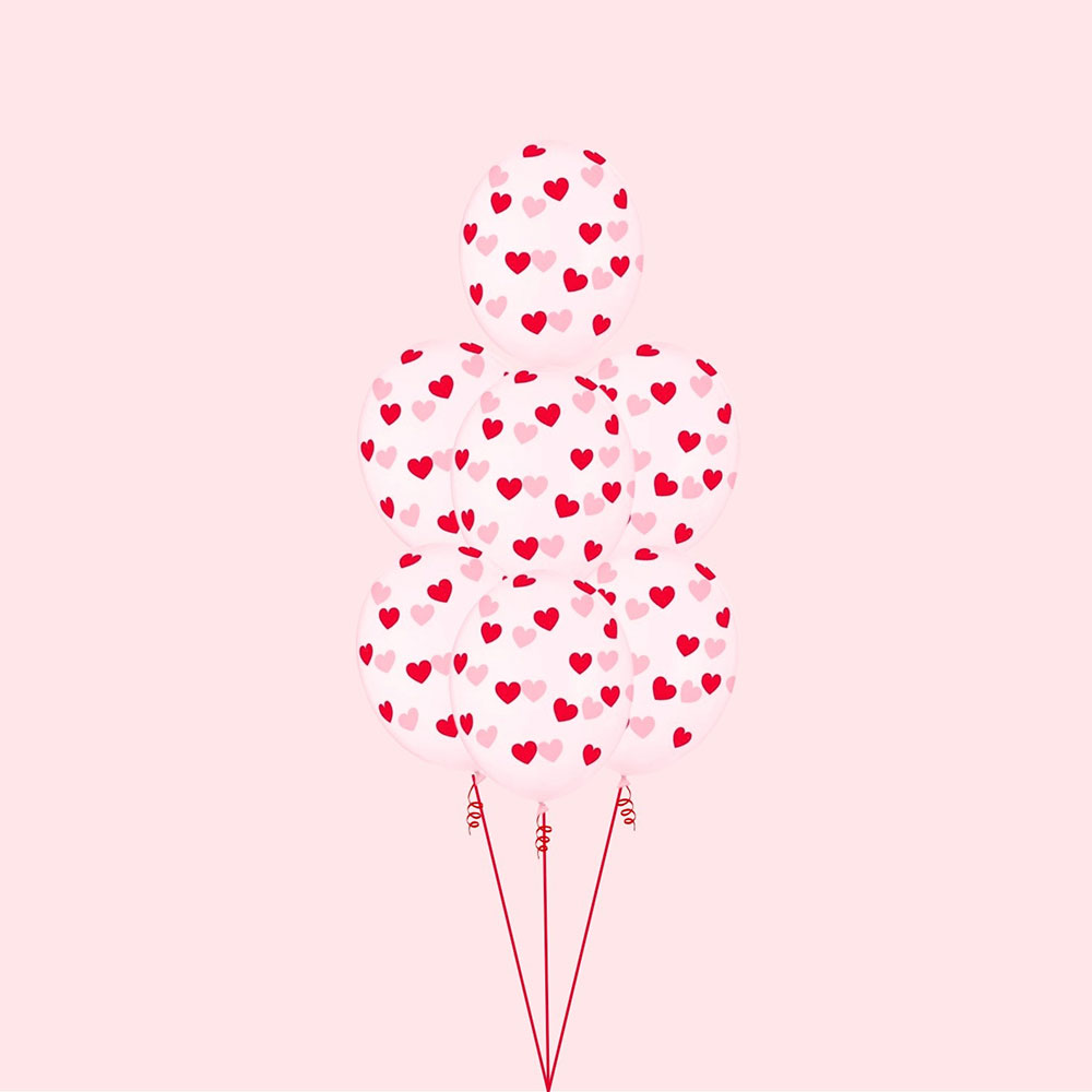 • 7x helijev balon iz lateksa (prozoren), potiskan s srčki