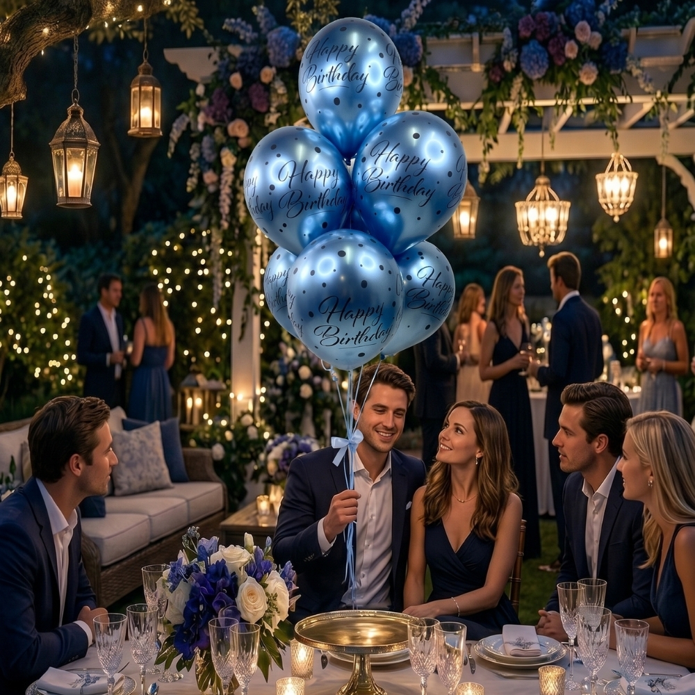 • 7x lateks balonov »Happy Birthday« kraljevo modre barve