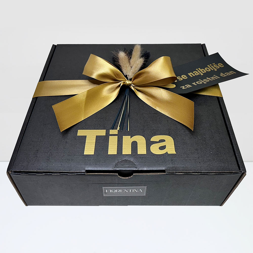 Darilo je personalizirano in lahko na škatlo ali v škatlo izpišemo ime obdarovanca. V izbirniku izpolnite polje Ime obdarovanca.