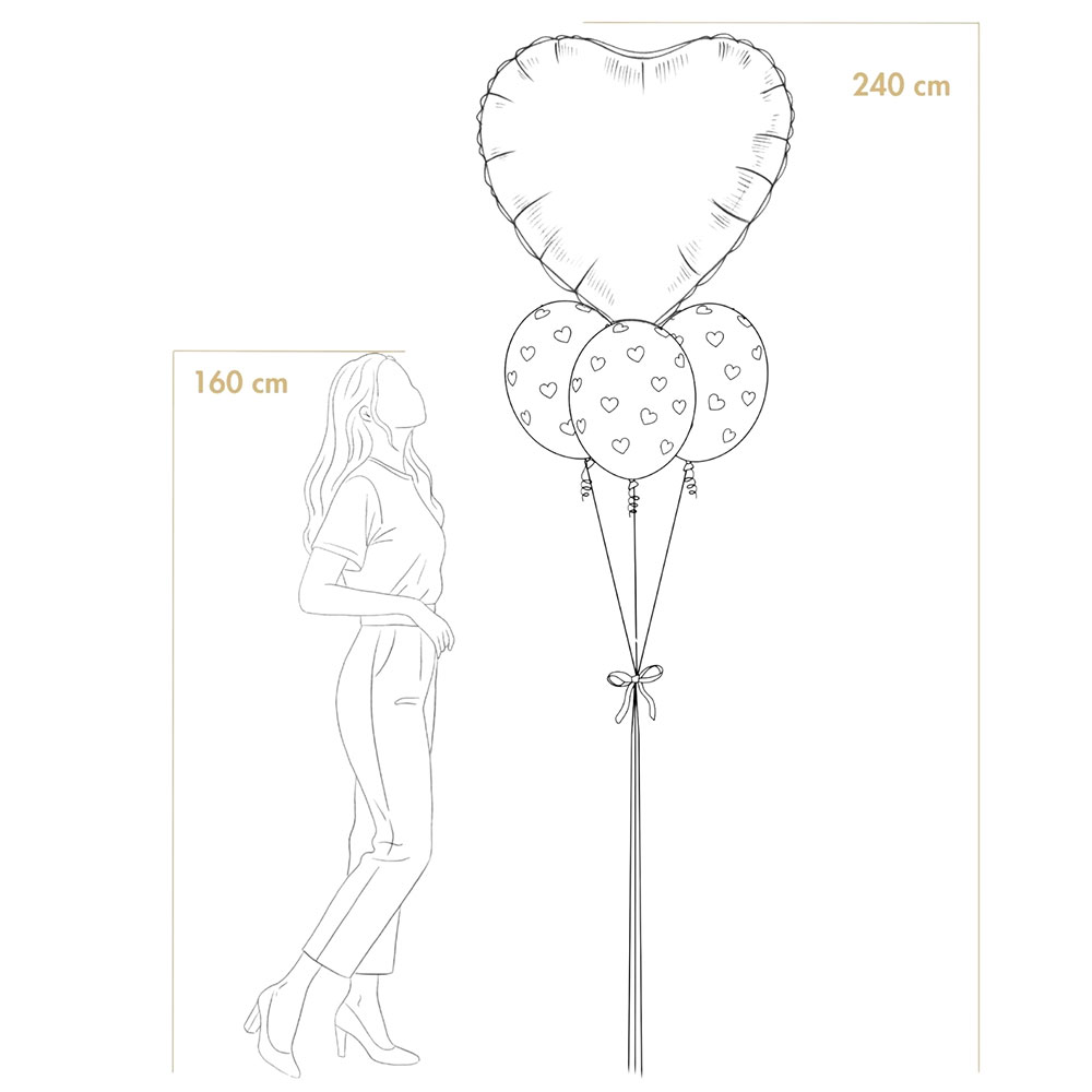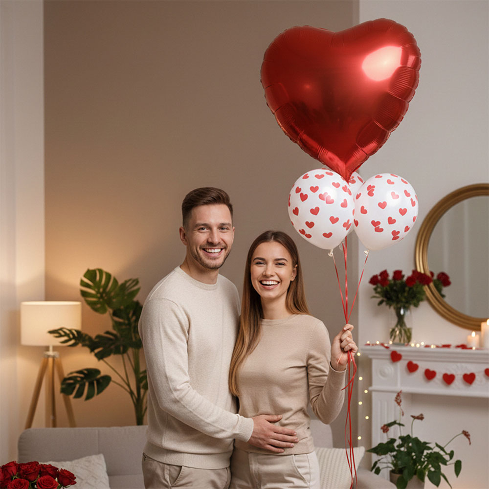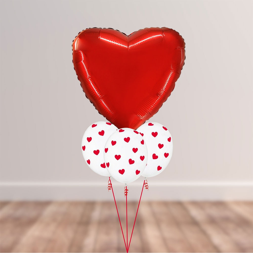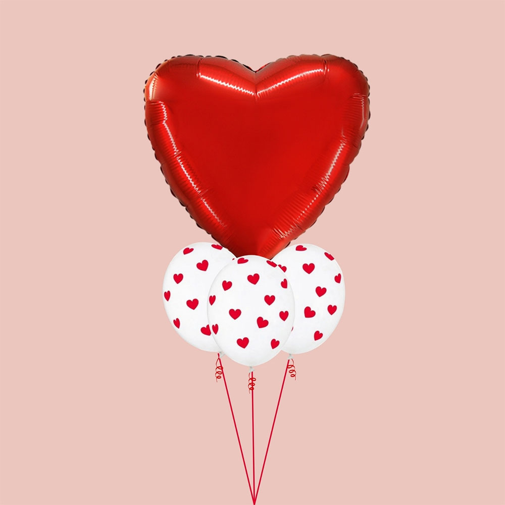 Baloni so napihnjeni s helijem in povezani v balonski šopek ter ustrezno obteženi. Osrednji element je mogočen rdeč balon v obliki srca, ki s svojim sijajem tokoj pritegne pogled. Barvno kombinacijo snežno bele in strastno rdeče barve v prostoru pričara čudovito vzdušje ter ga vizualno precej polepša. Balonski šopek se lahko izdela za na mizo ali za na tla oziroma glede na potrebe, na primer za fotografiranje ali dekoracijo prostora. Balonski šopek lahko kasneje tudi sami prilagodite prostoru.