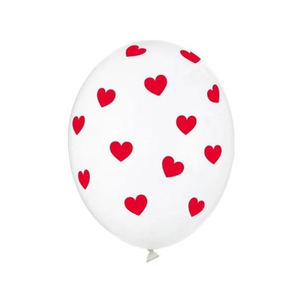 - 3x helijev balon, lateks, bela krogla z rdečimi srčki