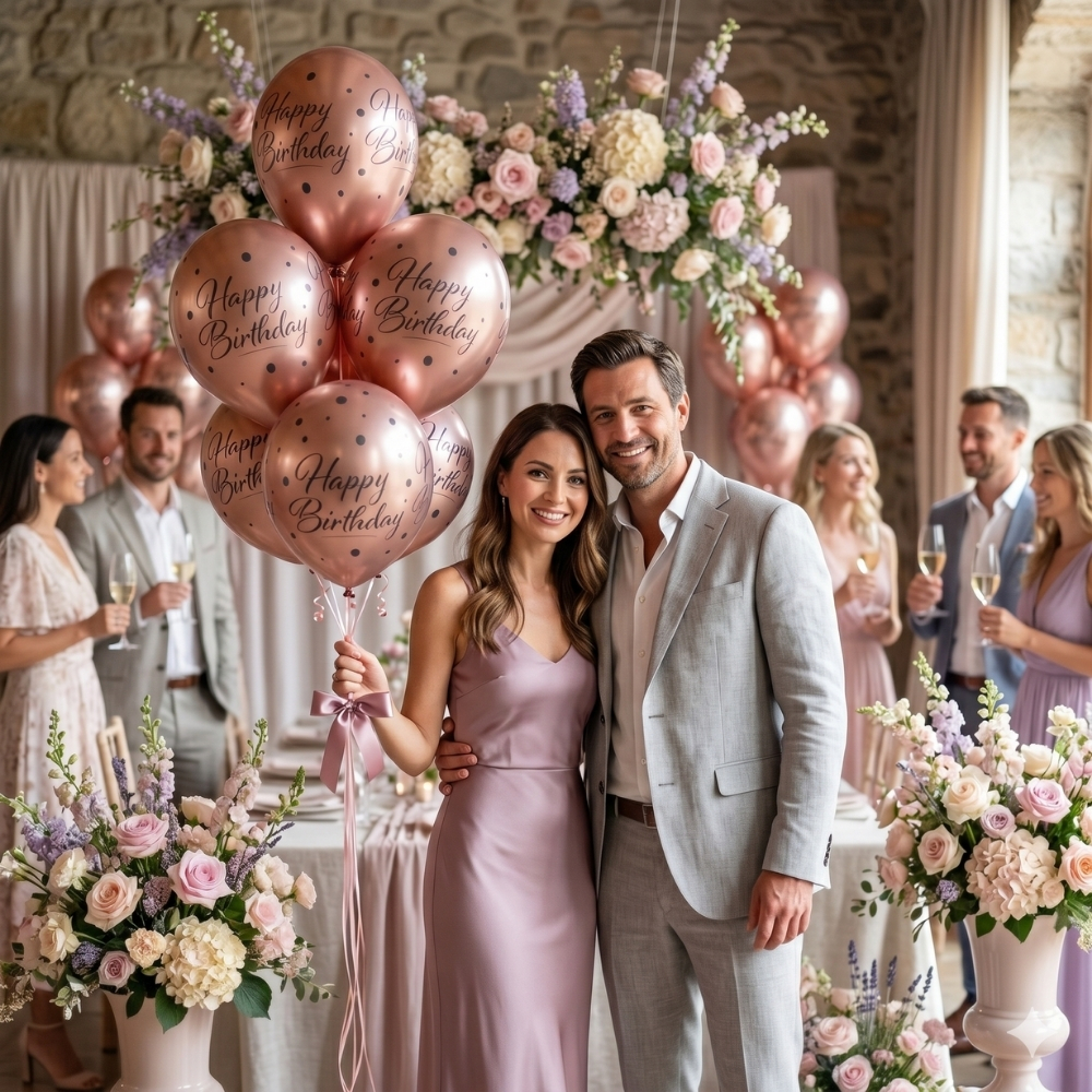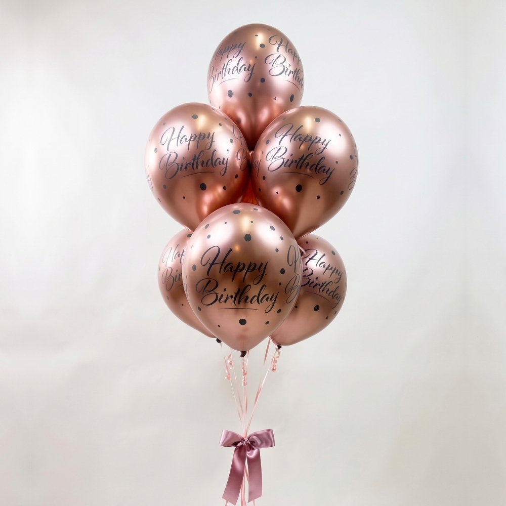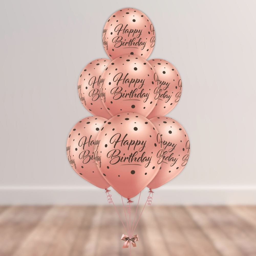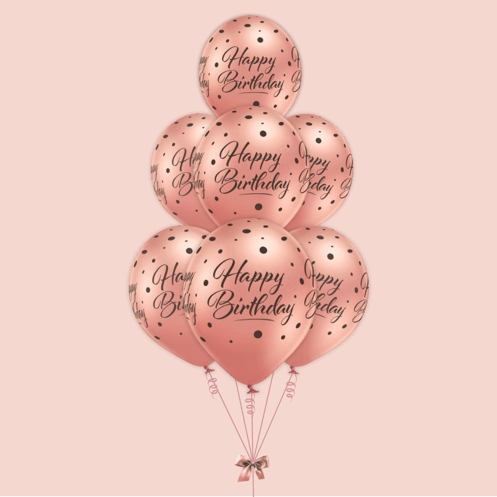 • 7x lateks balonov »Happy Birthday« rose gold barve