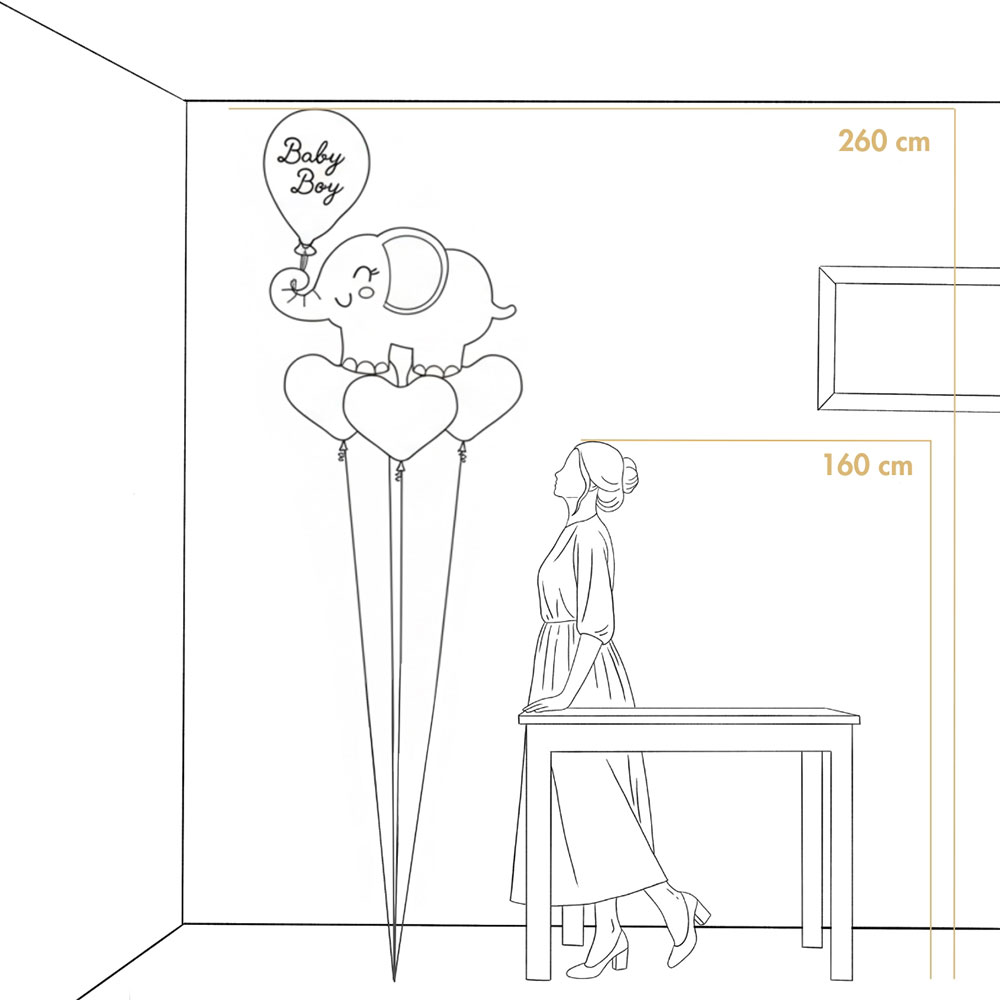 - 1x helijev balon, folija, figura »Slonček balonček«