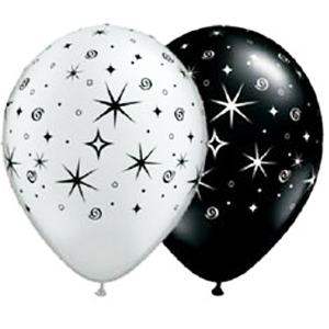 V kompletu je 5 potiskanih balonov v srebrni in črni barvi.