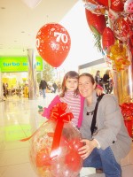Opis: Balon kot voščilo babici za 70. rojstni dan. Dekoracija je sestavljena iz darila, ki je zapakirano v balon ter okrašeno z mnogimi manjšimi baloni. Dekoraciji je dodan balon na helij z številko 70. Sicer pa v deželi balonov dobite balone z vsemi številkami od 1 - 100.