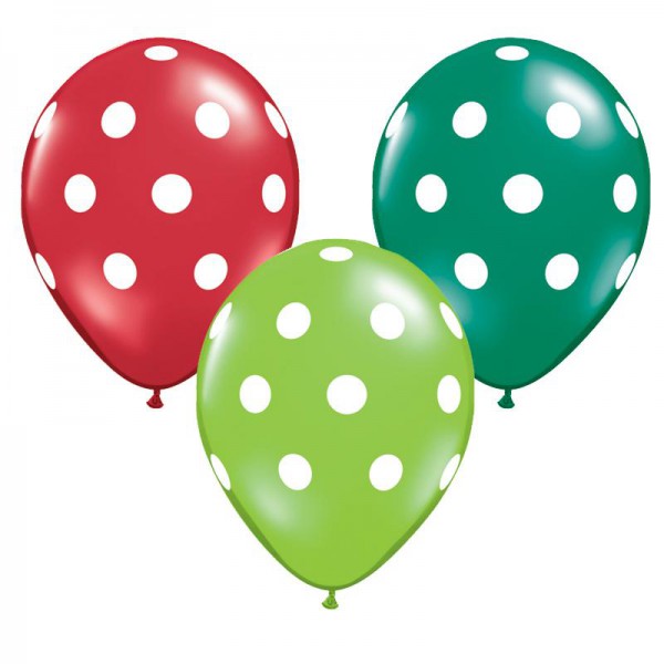 V kompletu je 5 potiskanih balonov v svetlo zeleni, temno zeleni in rdeči barvi.