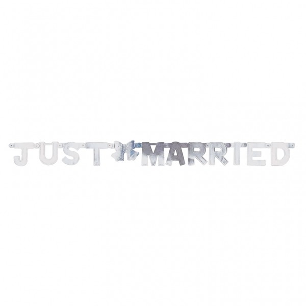 Napis Just Married je velikosti 1,37 m in je v srebrni barvi.