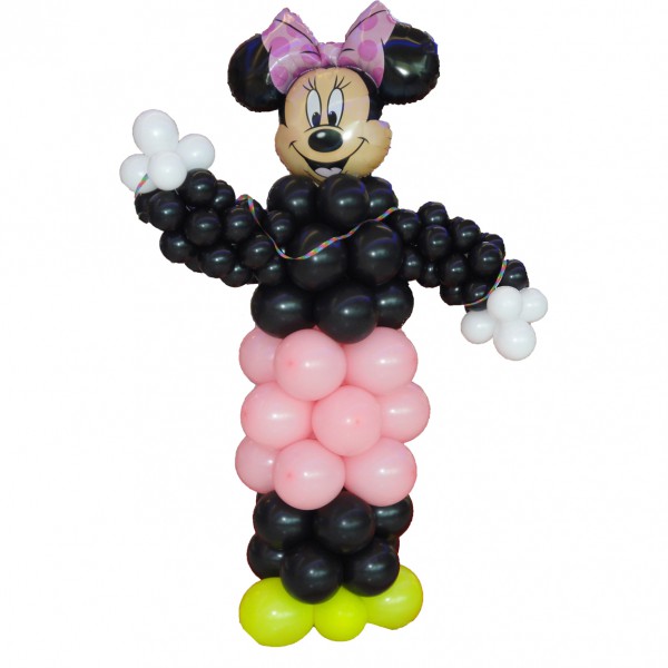 Balonska dekoracija Mini Miška je izdelana na samostoječem ogrodju in je visoka cca. 210 cm. Spletena je iz cca. 100 balonov v barvah priljubljene miške. Baloni so napolnjeni na zrak, Mini Miškina glava pa je napolnjena s helijem. Krasa čudovita, velika, pisana in privlačna Mini Miška.