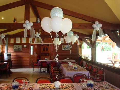 Poročni šopek je primeren za dekoracijo poročnih miz, saj prijetno zapolni sredino prostora in se ga lahko uporablja namesto šopkov z rožami. Višina balonov je določena nad glavami gostov, v kolikor ti stojijo, tako da ne motijo vidnega polja za slikanje.
