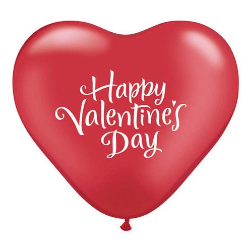 V kompletu je 5 potiskanih balonov v obliki srčka v rdeči barvi.