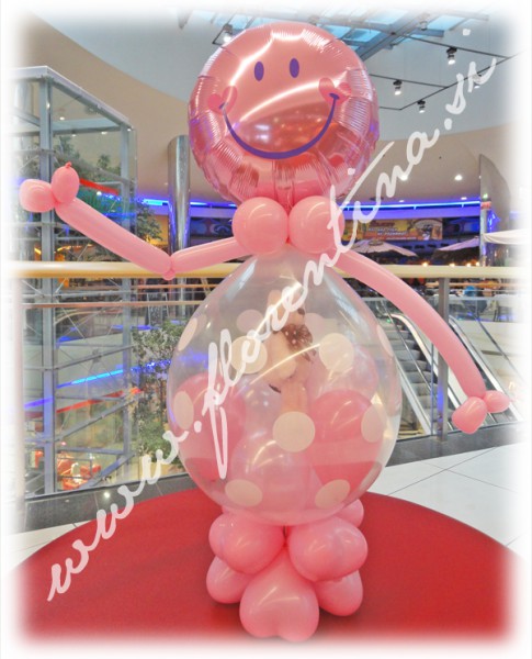 Darilo lahko zapakiramo tudi tako, da damo darilo v trebušček izbranega lika. Tako lahko izberete tudi kakšno drugačno glavo: npr. muca, kravica, žirafa in temu barvno prilagodimo tudi druge balone.