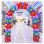 Balonska dekoracija - Velb s pikicami je narejen iz 164 balonov iz lateksa potiskanih s pikicami v pisanih barvah. Velb je višine 300 cm in širine 200 cm. Baloni so pritrjeni na kovinskem ogrodju. Velb s pikicami je zelo lepa balonska dekoracija, ki popestri marsikateri vhod v poslovni prostor.