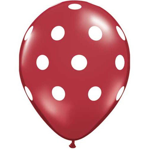 Baloni so iz lateksa, dimenzije 28 cm z motivom pikic v rdeči barvi.