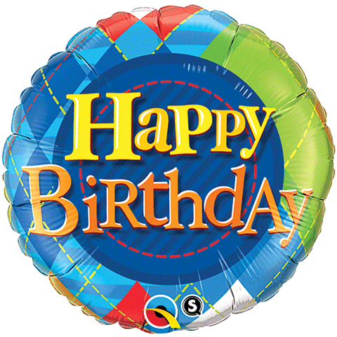 Balon Birthday Tartan Plaid je narejen iz folije in je dimenzije 45 cm.