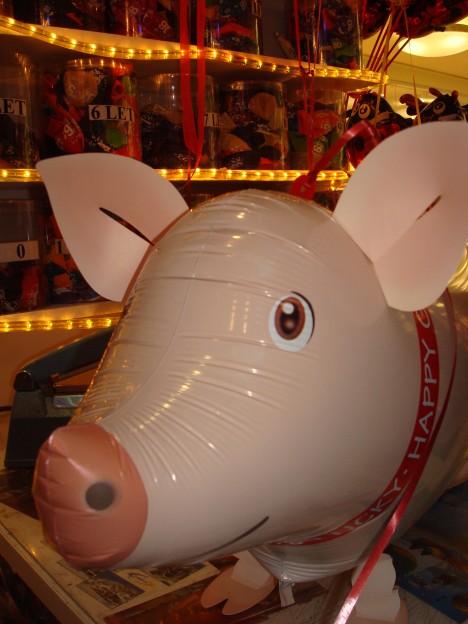 Opis: Izvirna domislica za popestritev praznovanja tale naš prašiček, balon z nogicami, ki hodi sam. Prava prodajna uspešnica in glavni vir smeha na zabavah, po pripovedavanju njegovih lastnikov.