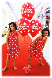 Rdeče z belimi pikicami, Florentinin najljubši motiv. V naši trgovini sta se oglasili simpatični sestrici dvojčici, v čudovitih rdečih oblekicah z belimi pikicami.